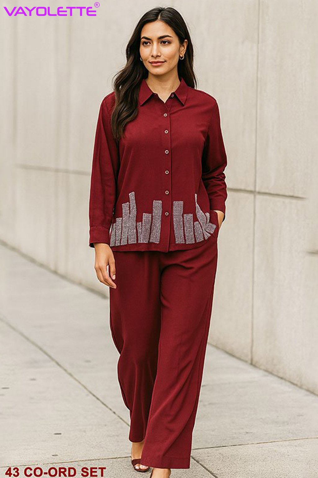 stone embellished co-ord set, wholesale co-ord sets, top and trouser set for women, stylish women’s co-ord sets, Vayolette co-ord set, boutique fashion wholesale, trendy two-piece outfit for women, elegant party wear sets